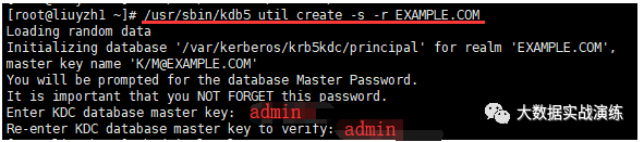 2.创建kerberos数据库 (*注:会提示你输入密码。)