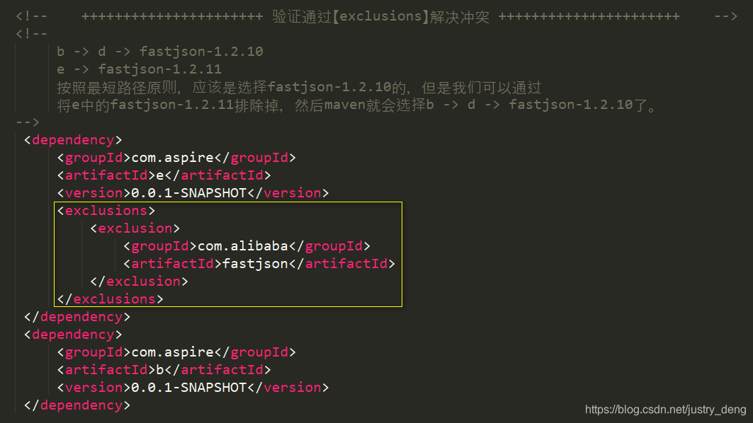 第一种:使用【exclusions】排除不需要的依赖。