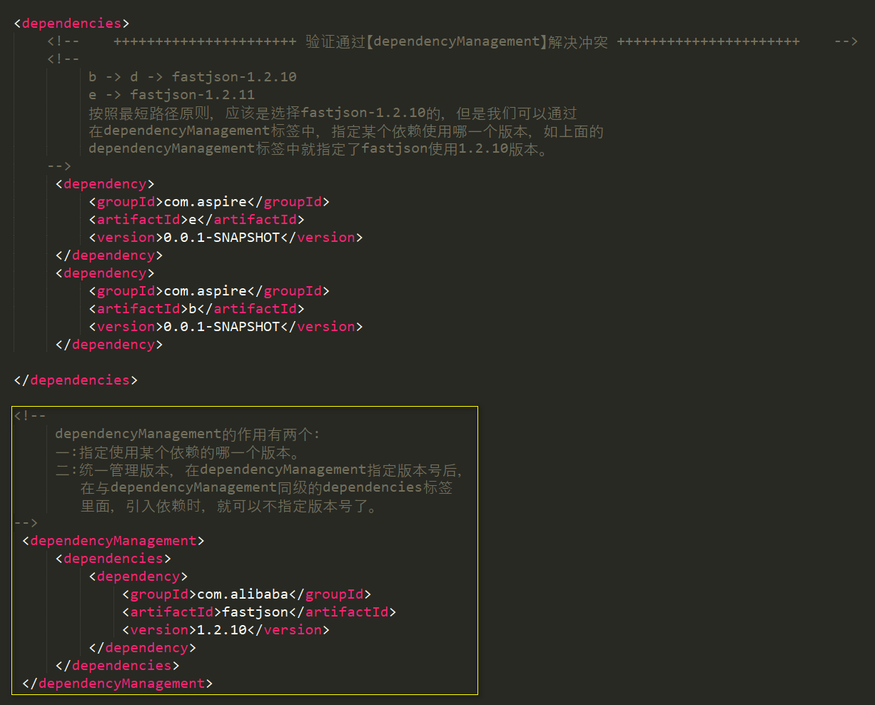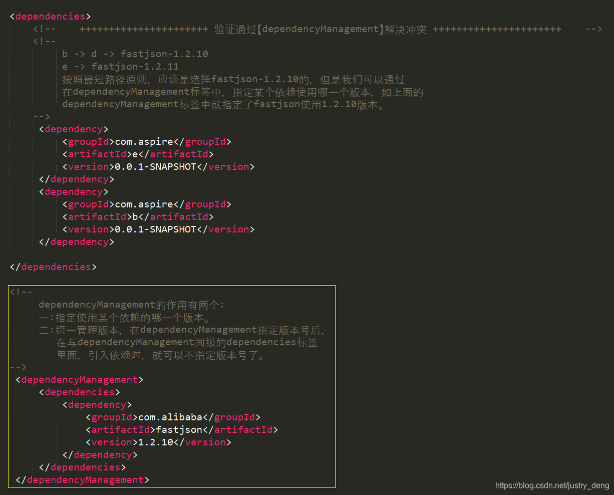 第二种:使用【dependencyManagement】指定使用哪一个版本的依赖。