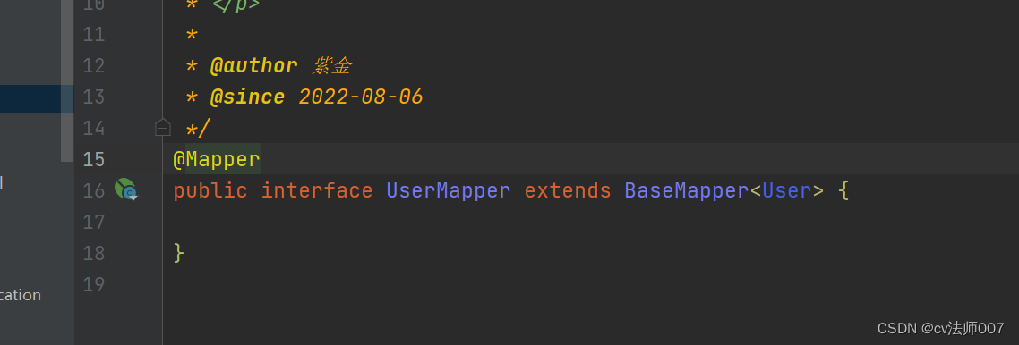 出现报错,原因是没有将Mapper进行注解,启动类没有扫描到Mapper。这里有两个方式,第一个方式就是在Mapper文件上进行注解 (所有Mapper文件都要注解)