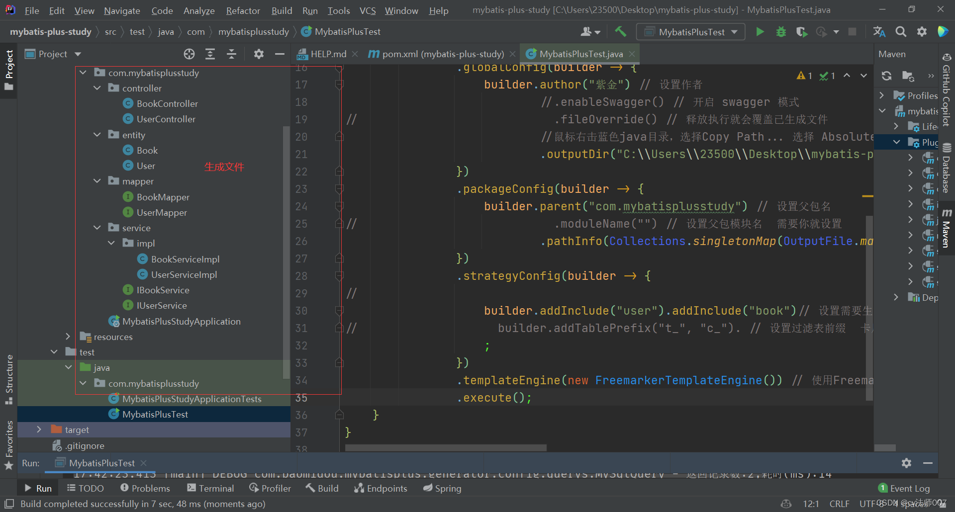 .outputDir("C:\\Users\\23500\\Desktop\\mybatis-plus-study\\src\\main\\java"); // 指定输出目录