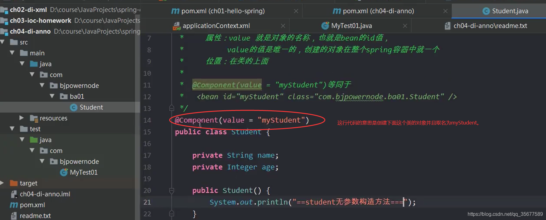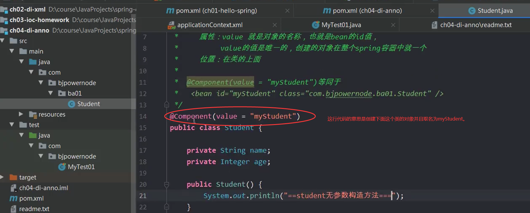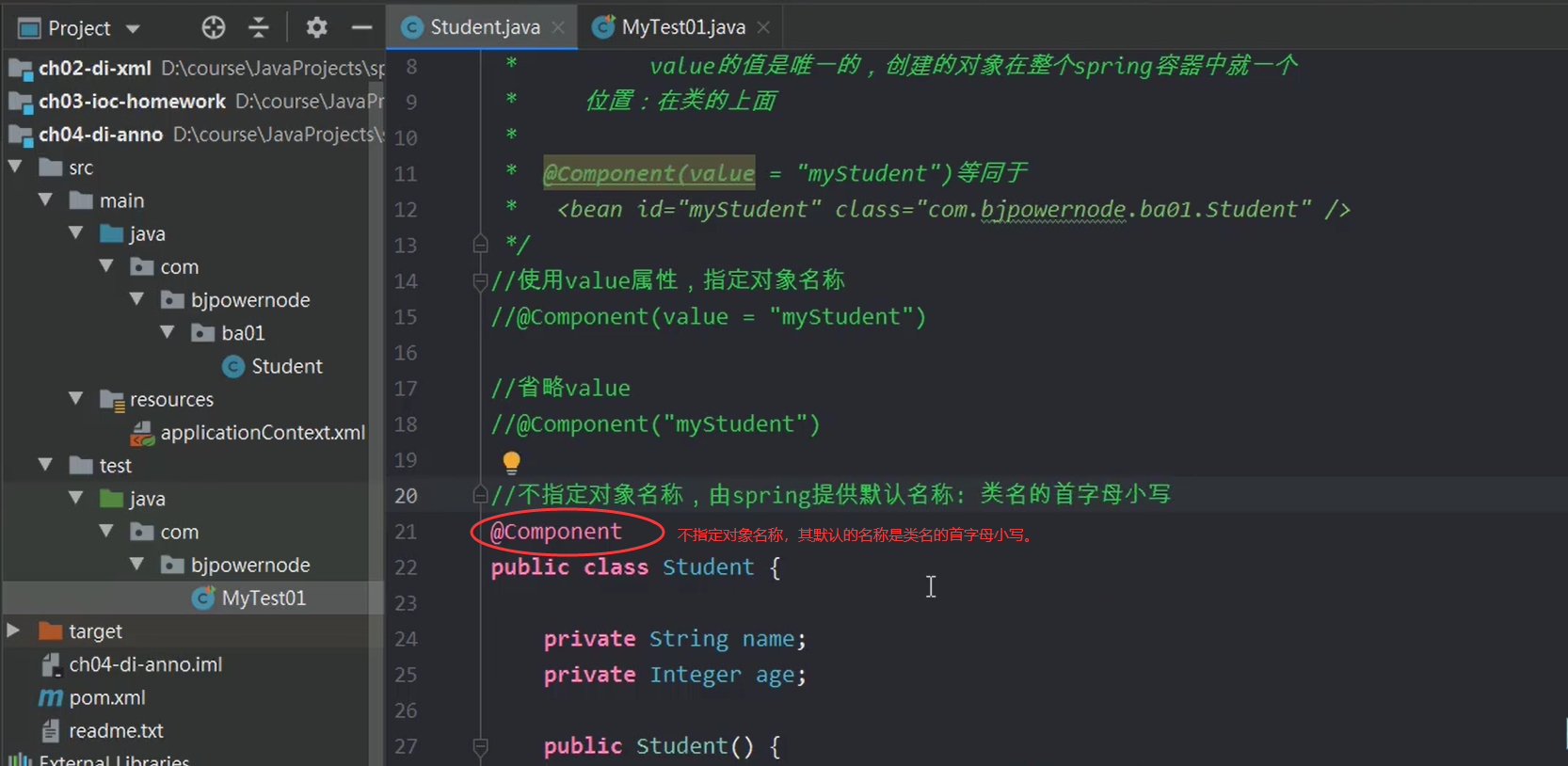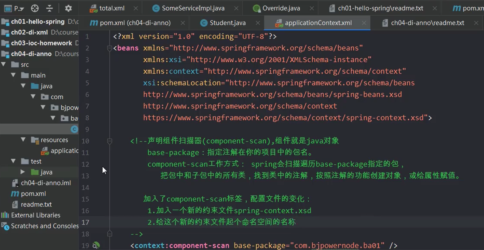 3、指定一个组件扫描器(告诉框架到哪找注解)