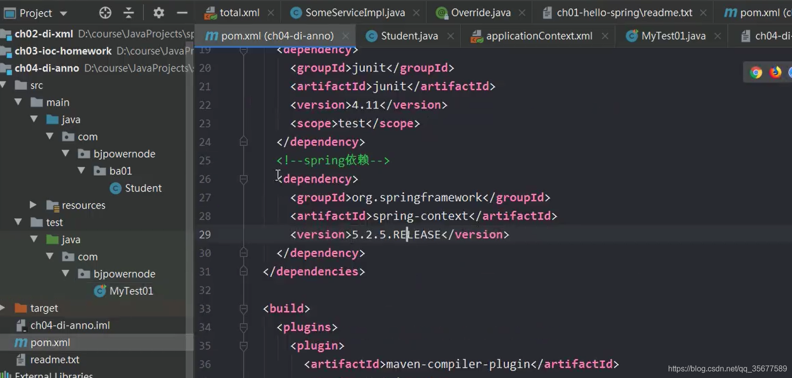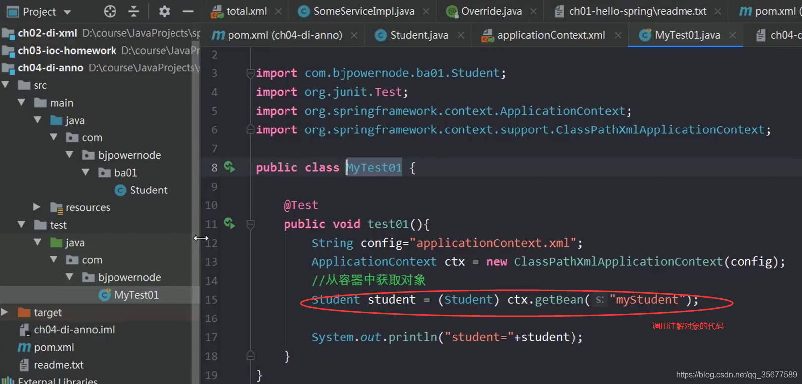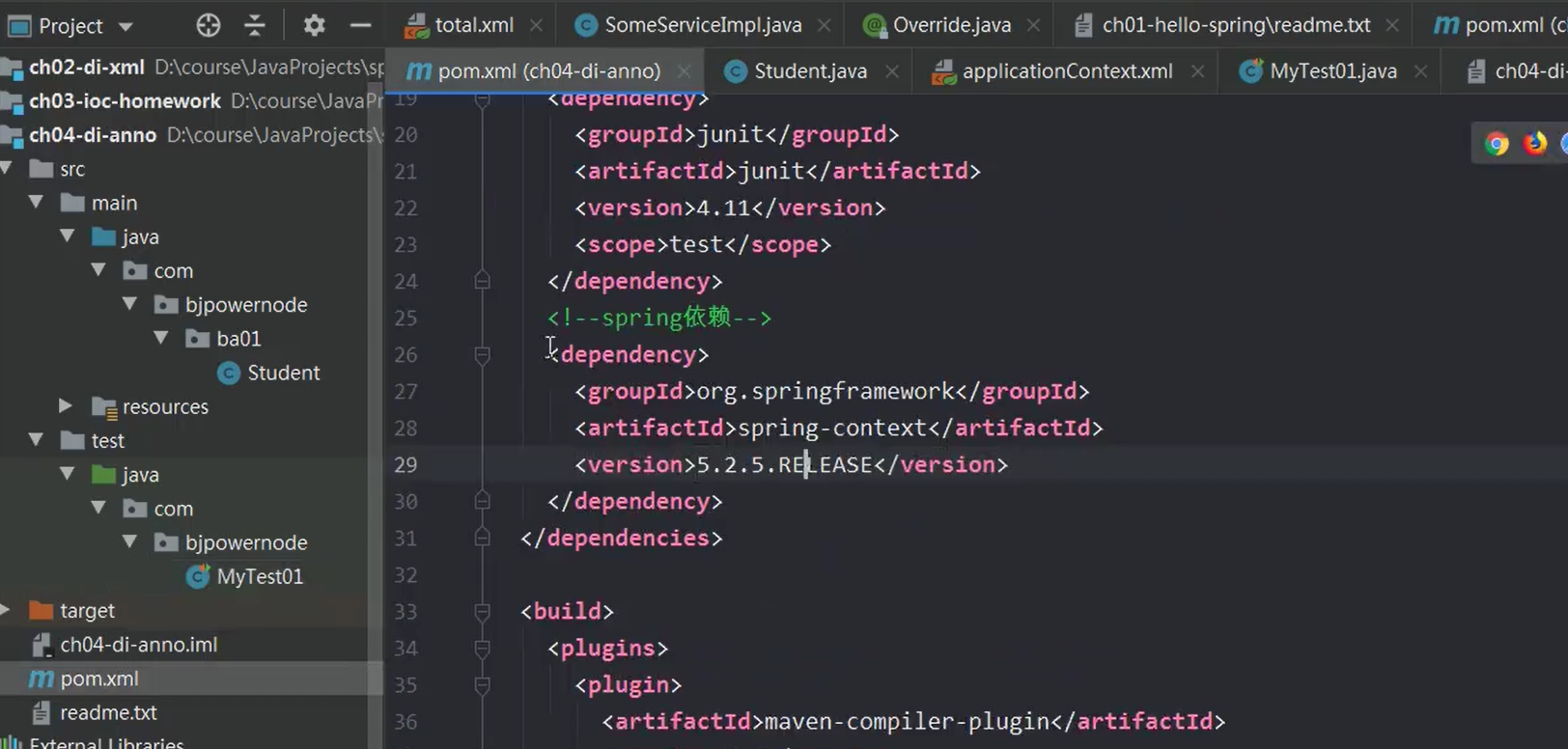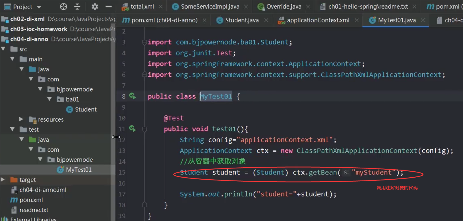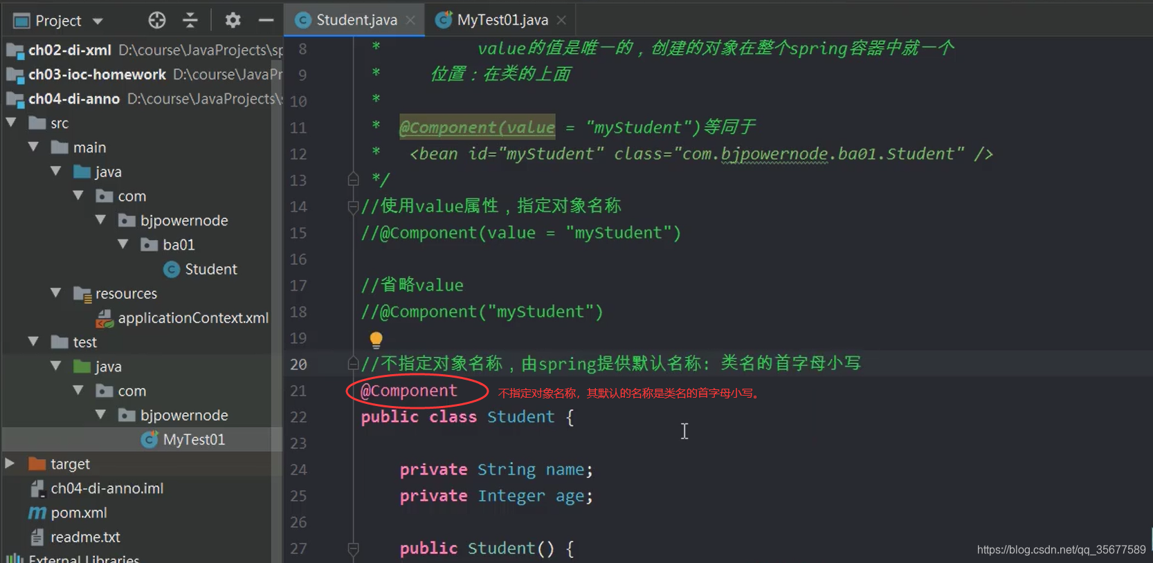 3、指定一个组件扫描器(告诉框架到哪找注解)