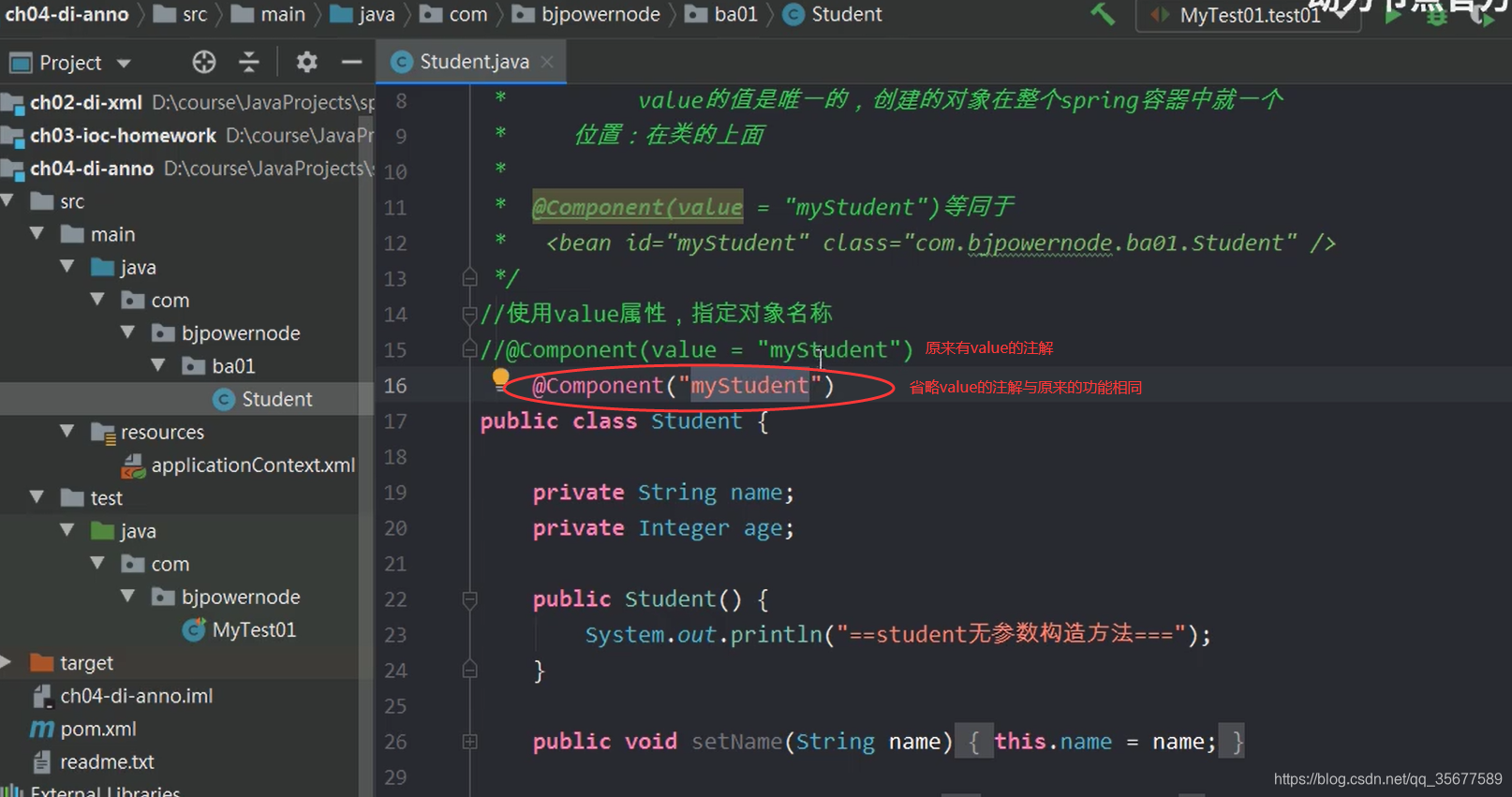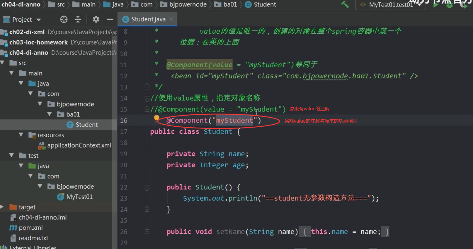1、 注解类中省略value关键字直接将名字写到后面括号里:(最常用的工作方法)