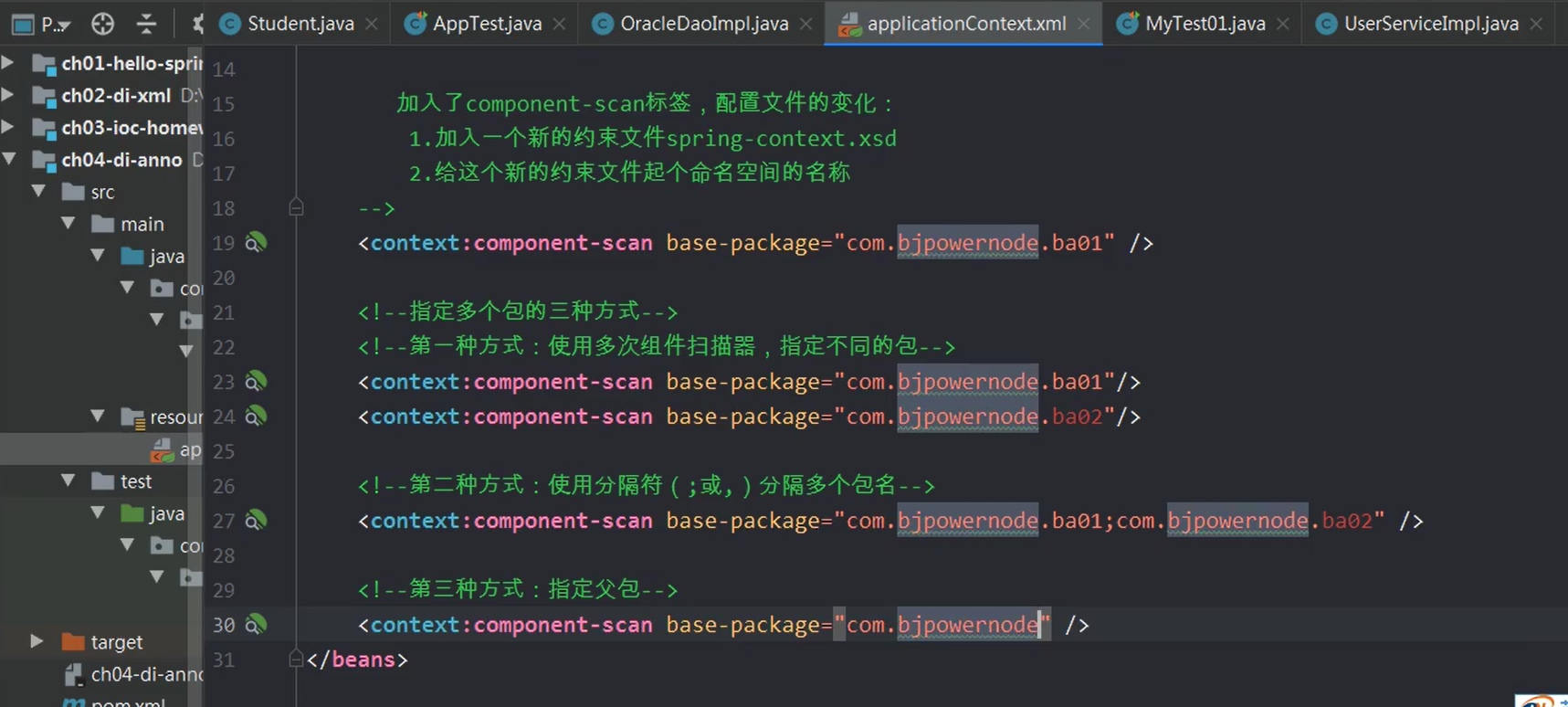 B、使用bean文件指定扫描的类文件时(上面Component创建对象的第三步)的三种指定包的的方式