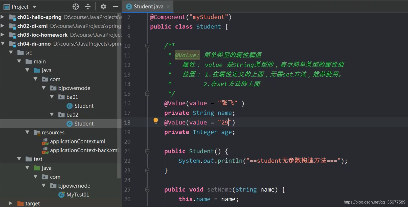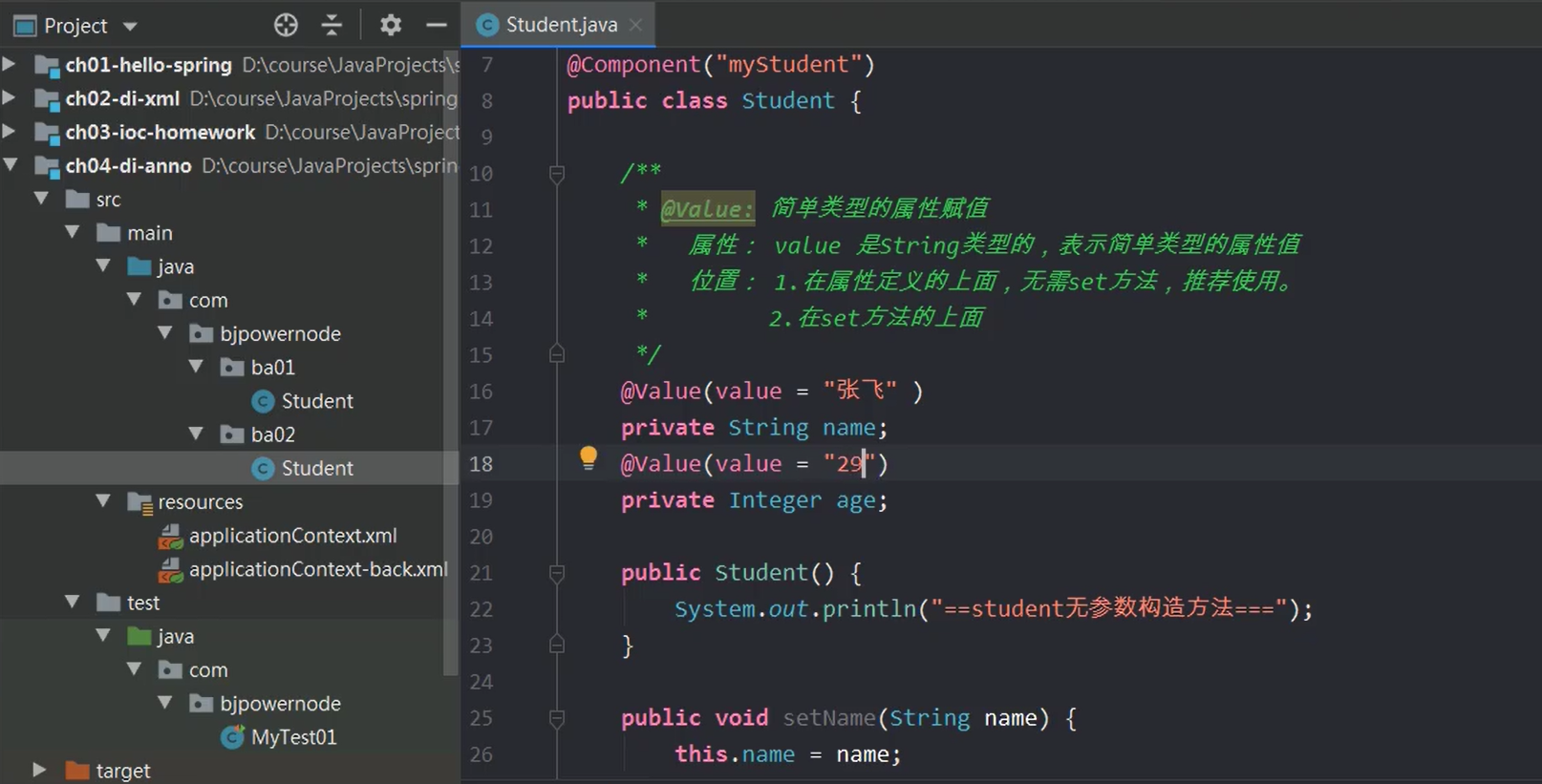 第一种方式,直接在属性变量上边写@value来改变属性值