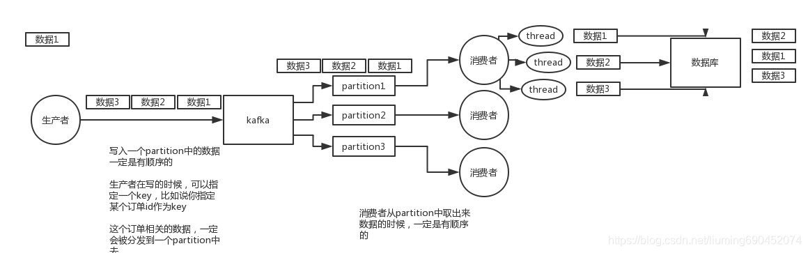 (2)kafka:一个topic,一个partition,一个consumer,内部多线程,这不也明显乱了