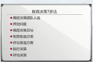 1、1、 “有效决策七步法”由哪几个步骤组成?