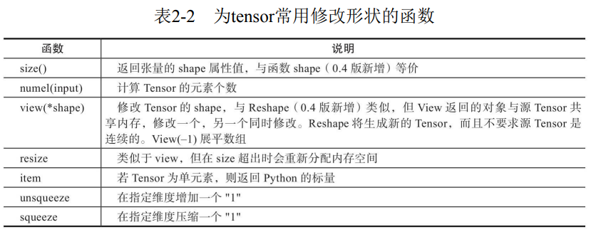 t2的值1,t2的数据类型torch.LongTensor2.4.3 修改Tensor形状