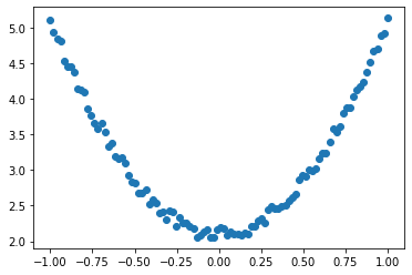 y = 3*x.pow(2) +2+ 0.2*torch.rand(x.size())