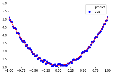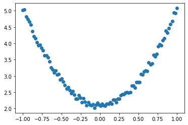 - 首先,给出一个数组x,然后基于表达式y=3x 2+2,加上一些噪音数据 到达另一组数据y。