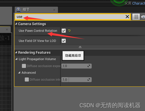相机使用pawn的旋转控制。