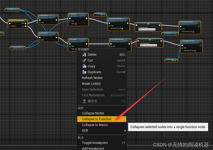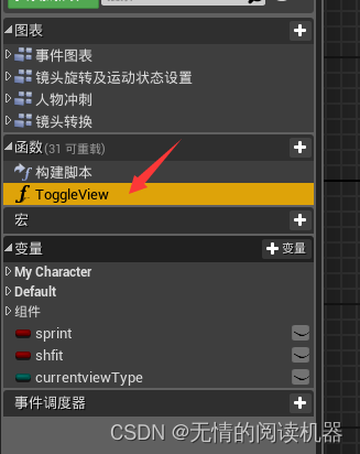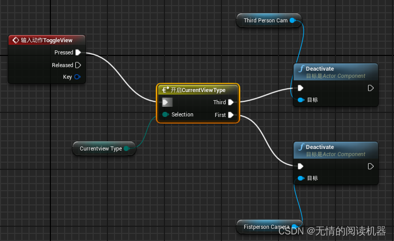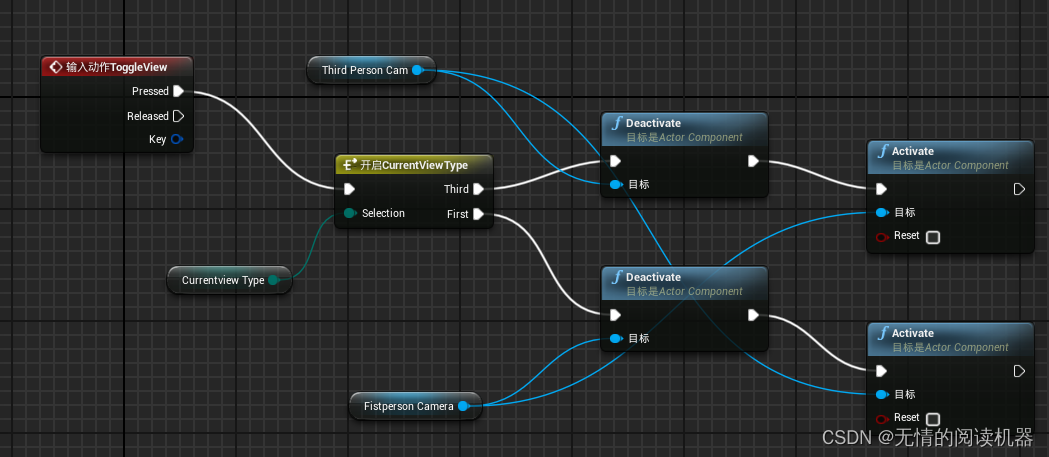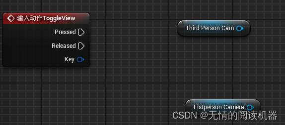 添加ToggleView输入事件,并且将两个相机的引用拖入蓝图
