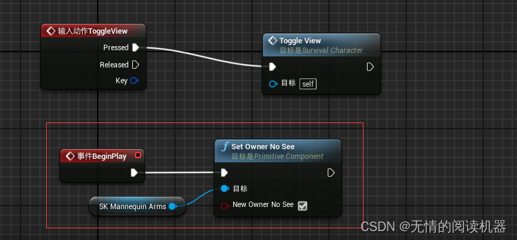 添加游戏开始事件,游戏开始时,我们先隐藏手臂mesh。