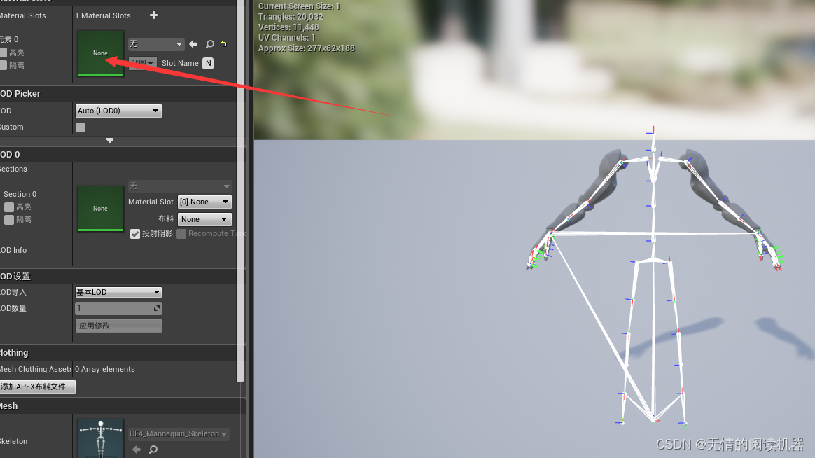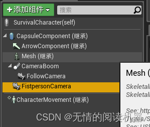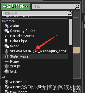 这样手臂就设置好了,然后我们在小白人蓝图里面新加入一个skeletal mesh组件。