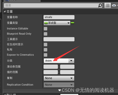 增加两个变量在小白人蓝图,为其创建并存放在Anim