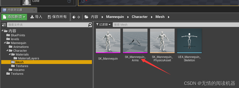 然后我们进入手臂mesh