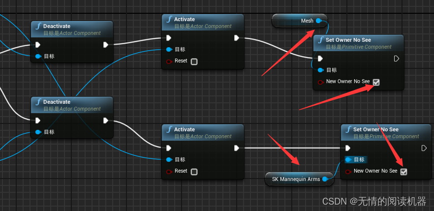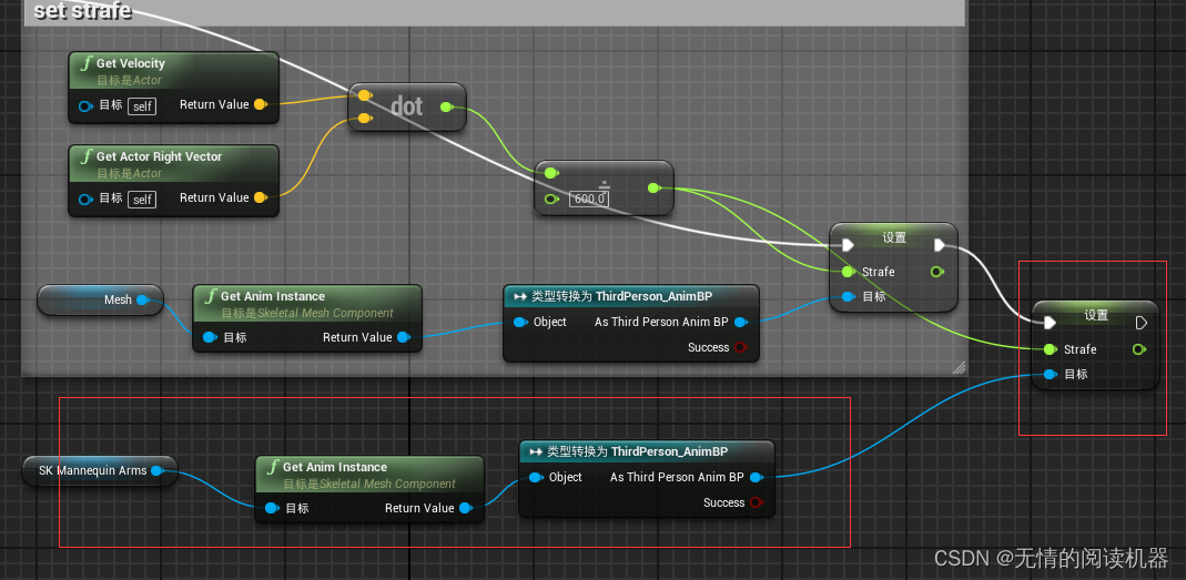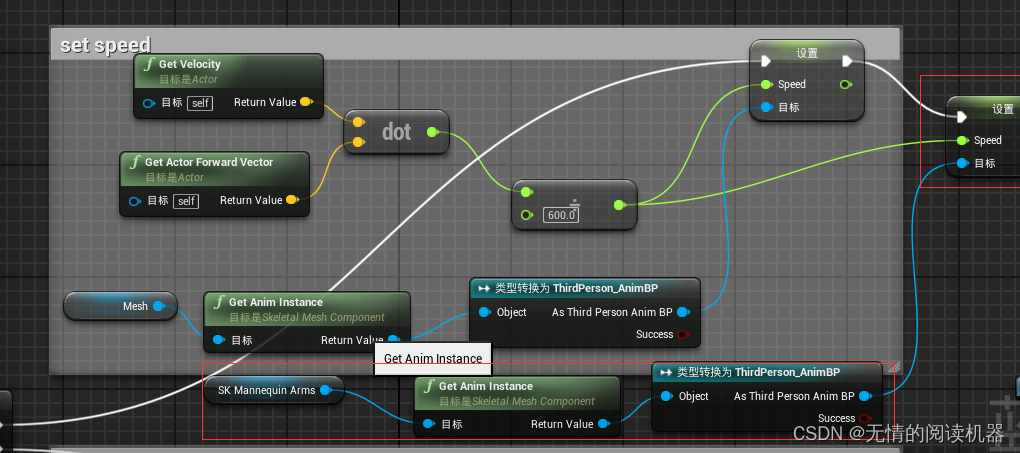 原因是胳膊mesh没有获得动画蓝图实例,所以没有向动画蓝图传参数。这样改就可以了。