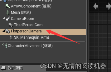 打开小白人的蓝图,发现我们蓝图里只有一个默认的第三人你相机。