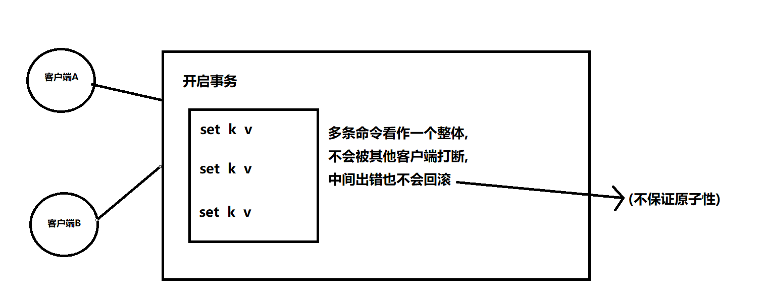 但是事务不保证同一事物中多条命令执行的原子性,即使命令有错误也会添加到队列中,执行报错也不影响其他命令执行.