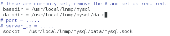 > -DMYSQL_UNIX_ADDR=/usr/local/lnmp/mysql/data/mysql.sock \ ##配置文件存放路径