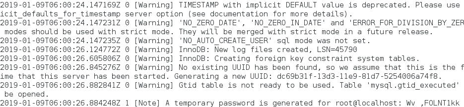[root@vm1 etc]# mysqld --user=mysql --initialize ##初始化mysql;会看到初始密码