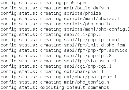 [root@vm1 php-5.6.35]# ./configure --prefix=/usr/local/lnmp/php --with-config-file-path=/usr/local/lnmp/php/etc --with-openssl --with-snmp --with-gd --with-zlib --with-curl --with-libxml-dir --with-png-dir --with-jpeg-dir --with-freetype-dir --with-gmp --with-gettext --with-pear --enable-mysqlnd --with-mysql=mysqlnd --with-mysqli=mysqlnd --with-pdo-mysql=mysqlnd --enable-inline-optimization --enable-soap --enable-ftp --enable-sockets --enable-mbstring --enable-fpm --with-fpm-user=nginx --with-fpm-group=nginx --with-mcrypt --with-mhash ##编译成功