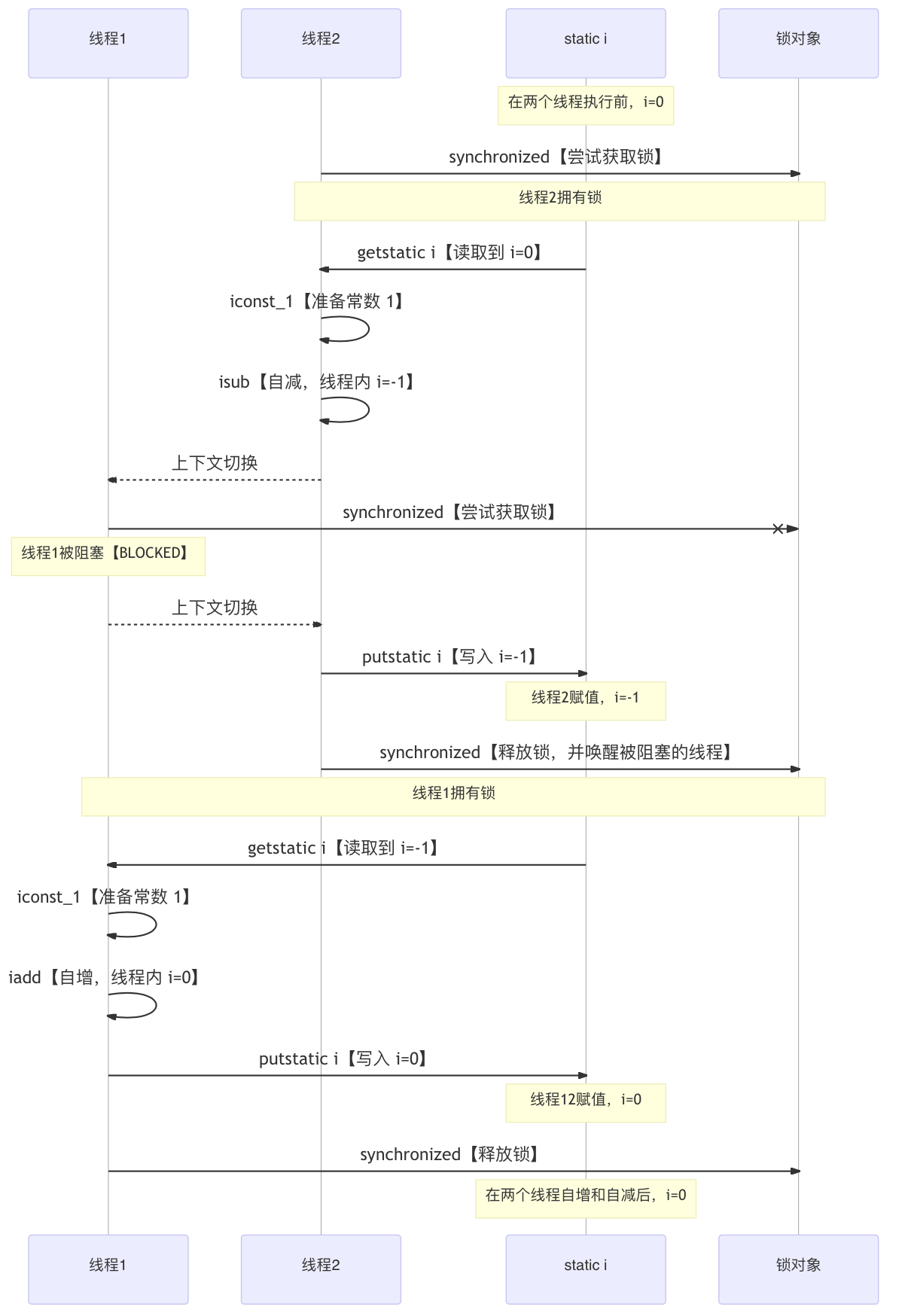 如果在执行指令的同时,发生了上下文切换,则可能一次自增和自减后 i!=0。