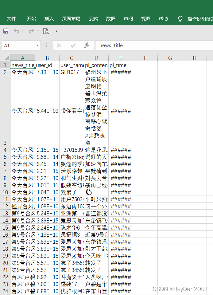 这是我之前所爬取的今日头条关于某个台风的相关评论