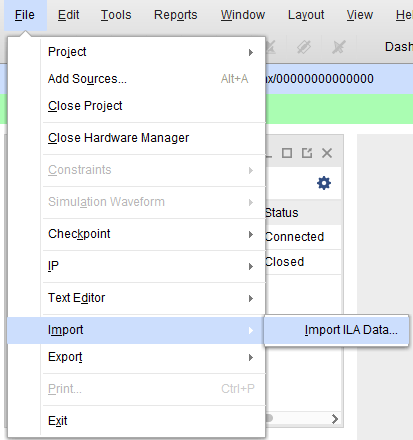 - 需要打开波形文件时,在VIVADO中打开Hardware Manager(Debug界面)执行如下操作。