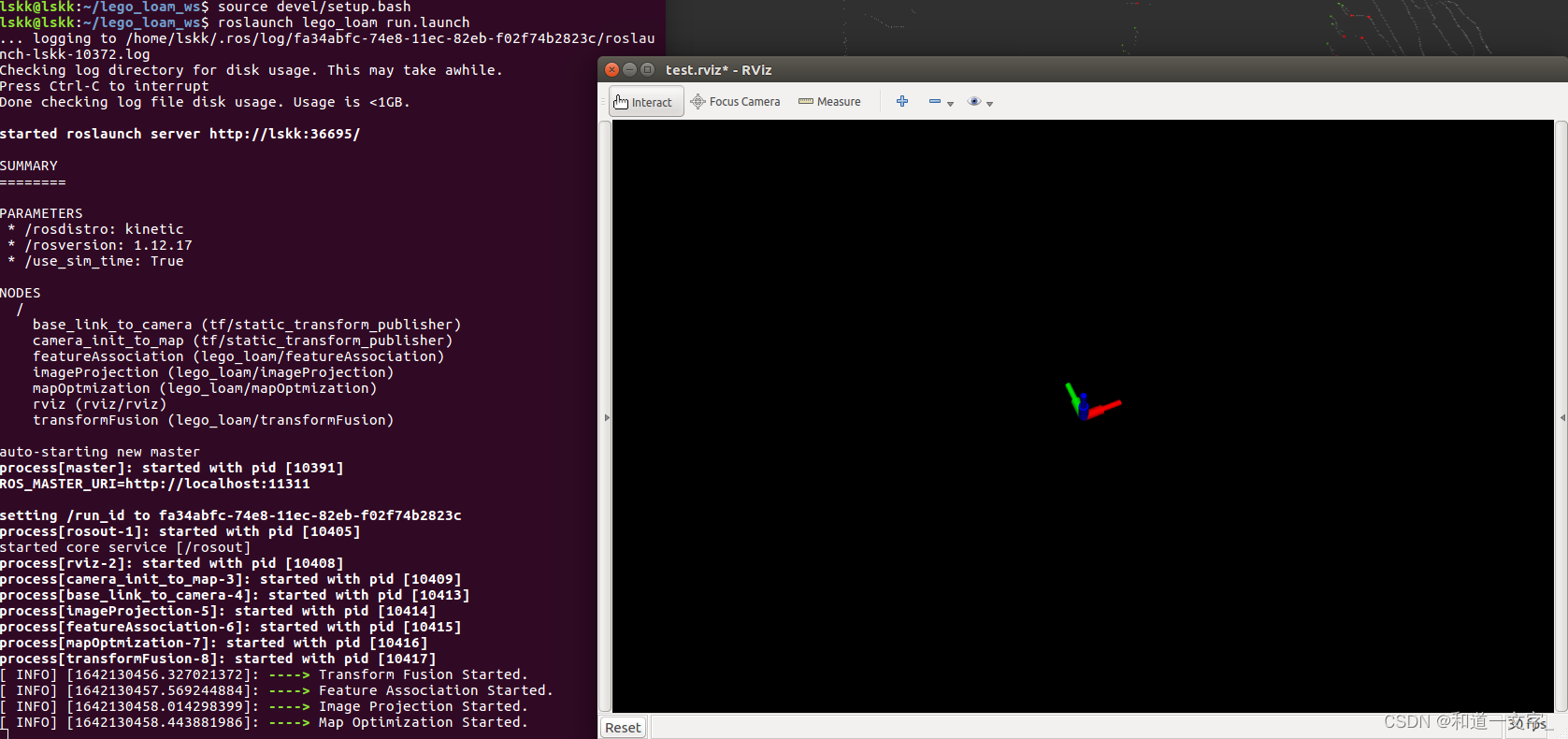 roslaunch lego_loam run.launch如下图所示,则程序运行成功: