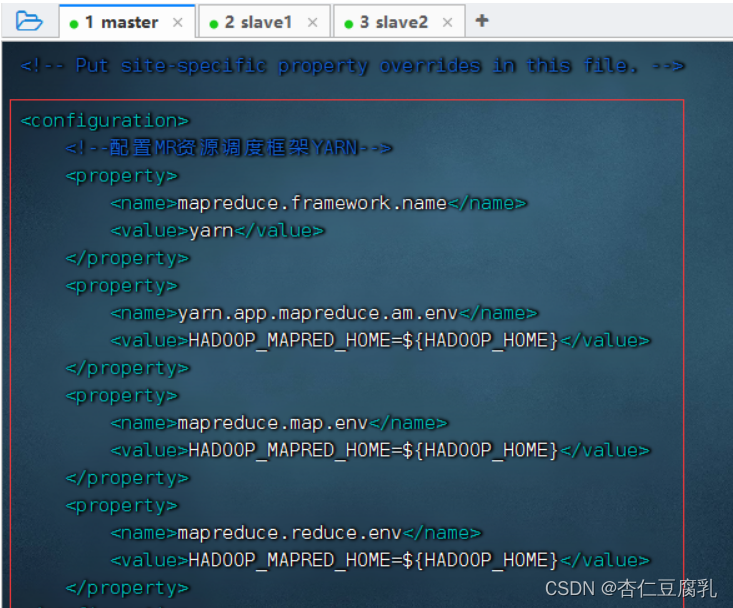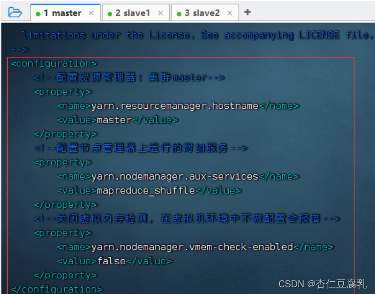说明:后三个属性如果不设置,在运行Hadoop自带示例的词频统计时,会报错:Error:Could not find or load main class org.apache.hadoop.mapreduce.v2.app.MRAppMaster