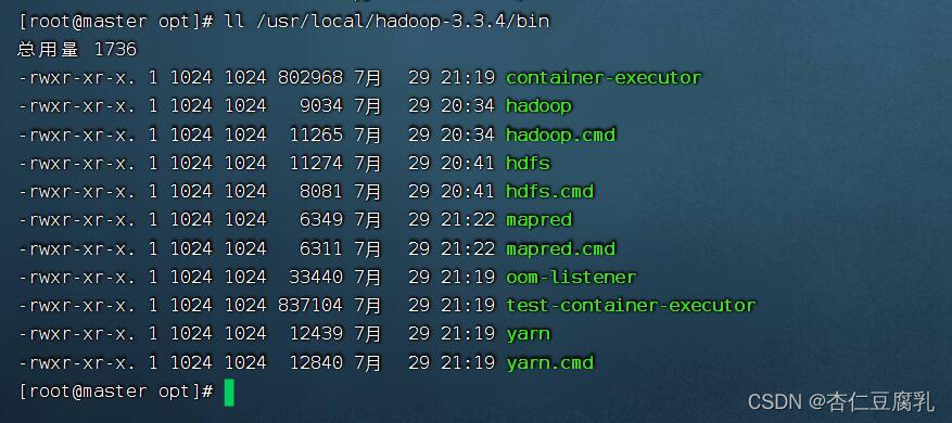 执行:ll /usr/local/hadoop-3.3.4/bin,查看