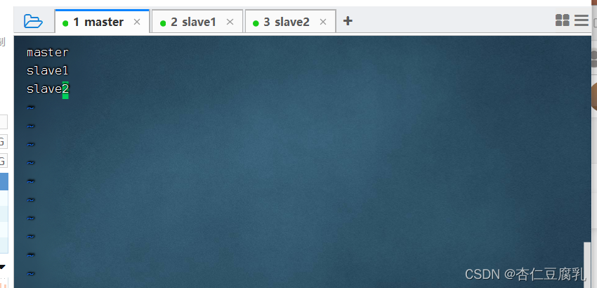 说明:slave2上步骤如上,只不过,将slave1换成slave2