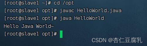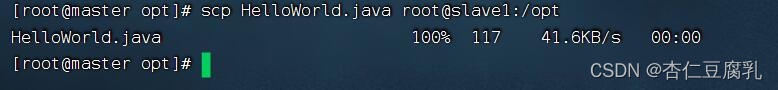 执行:scp HelloWorld.java root@slave1:/opt,将JAVA文件,复制到slave1