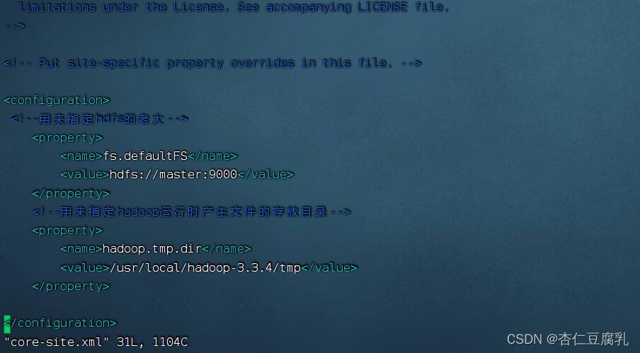 由于配置IP地址主机名映射,因此配置HDFS老大节点可用hdfs://master:9000,否则必须用IP地址:hdfs://192.168.1.101:9000