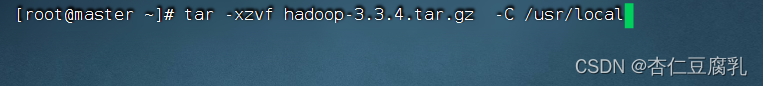3.将Hadoop压缩包解压到指定目录,执行:tar -xzvf hadoop-3.3.4.tar.gz -C /usr/local