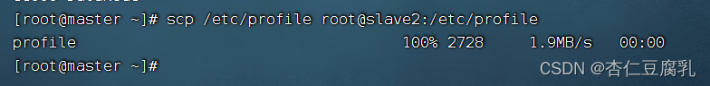 执行:scp /etc/profile root@slave1:/etc,将环境配置文件复制到slave1