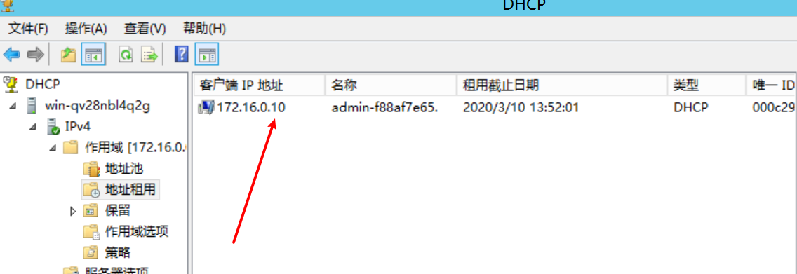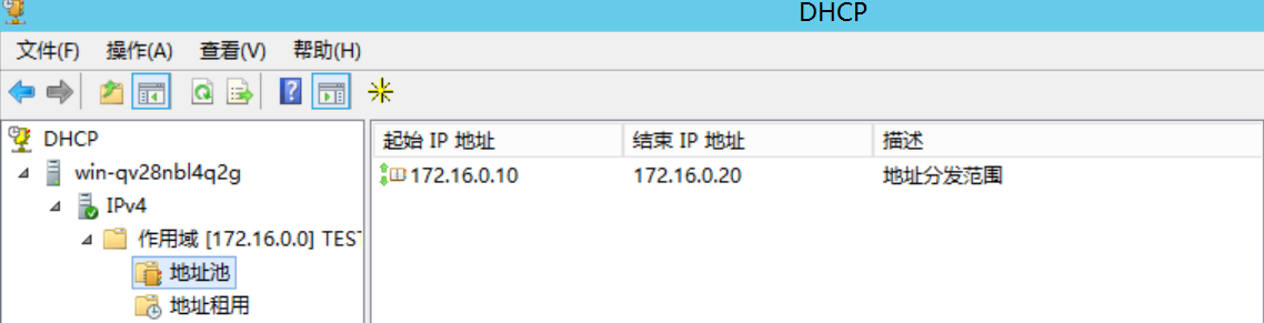 点击创建的作用域下的地址池,可以看到地址池中IP地址段信息就是之前配置的IP地址范围