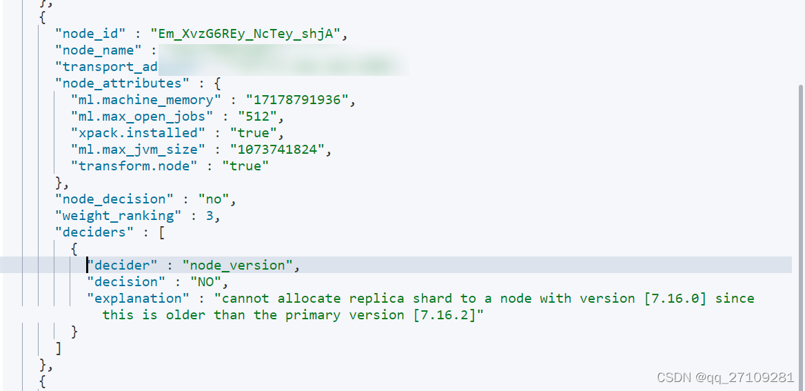 昨天在es集群上增加了一台Linux节点(之前都是Windows),Windows的版本是7.16.0,Linux的版本是7.16.2,之前记得在哪看到说小版本是不影响的,也没太在意。昨天运行一切正常。