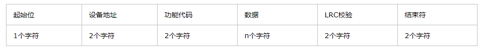 使用ASCII模式,消息以冒号(:)字符(ASCII码3AH)开始,以回车换行符结束(ASCII码0DH,0AH)。