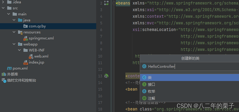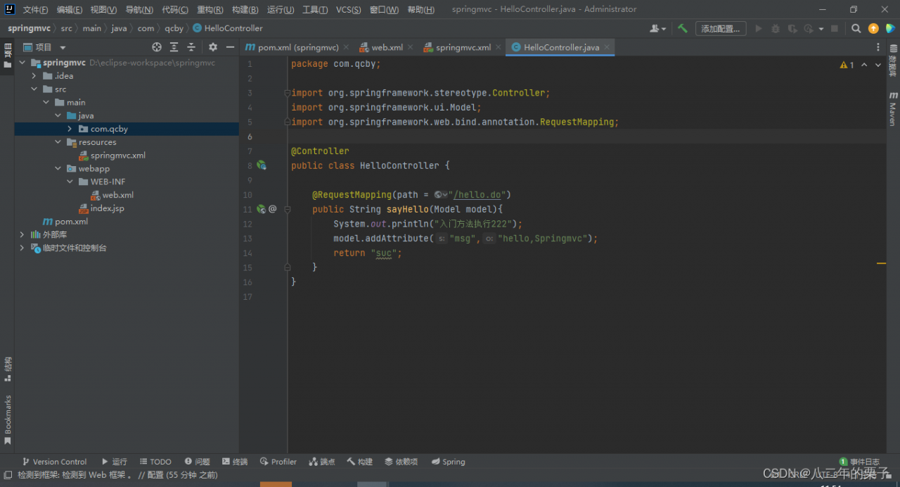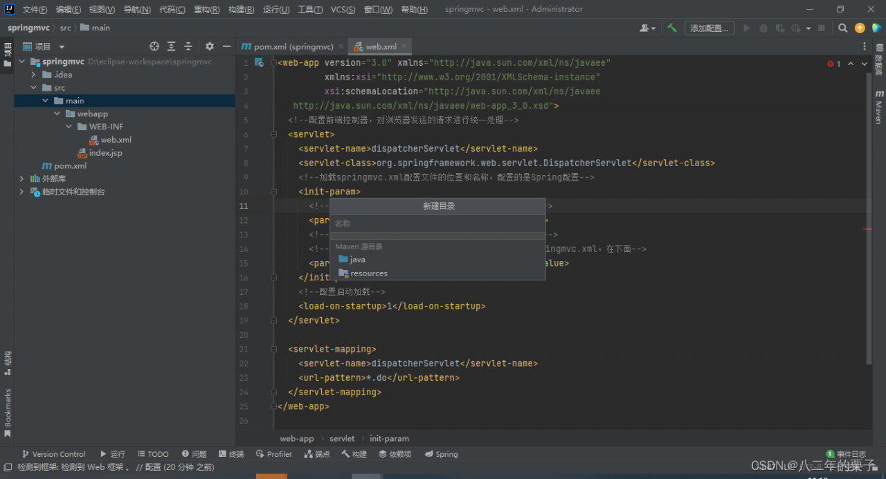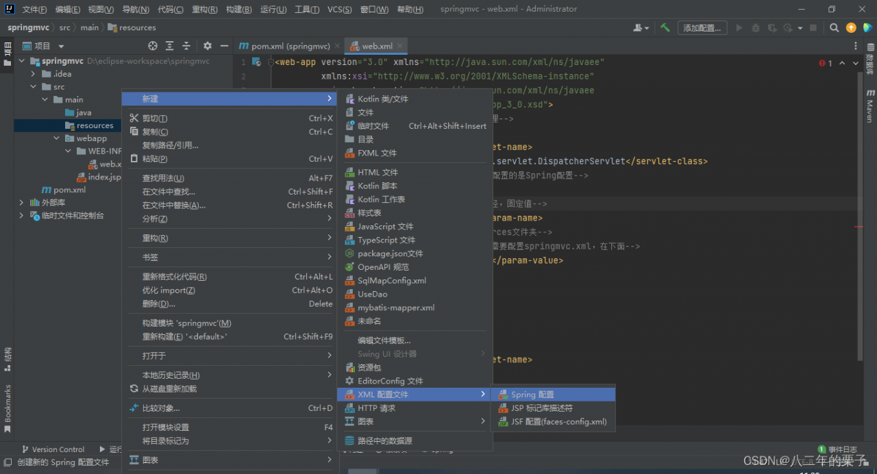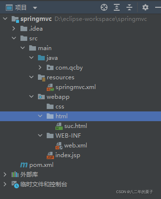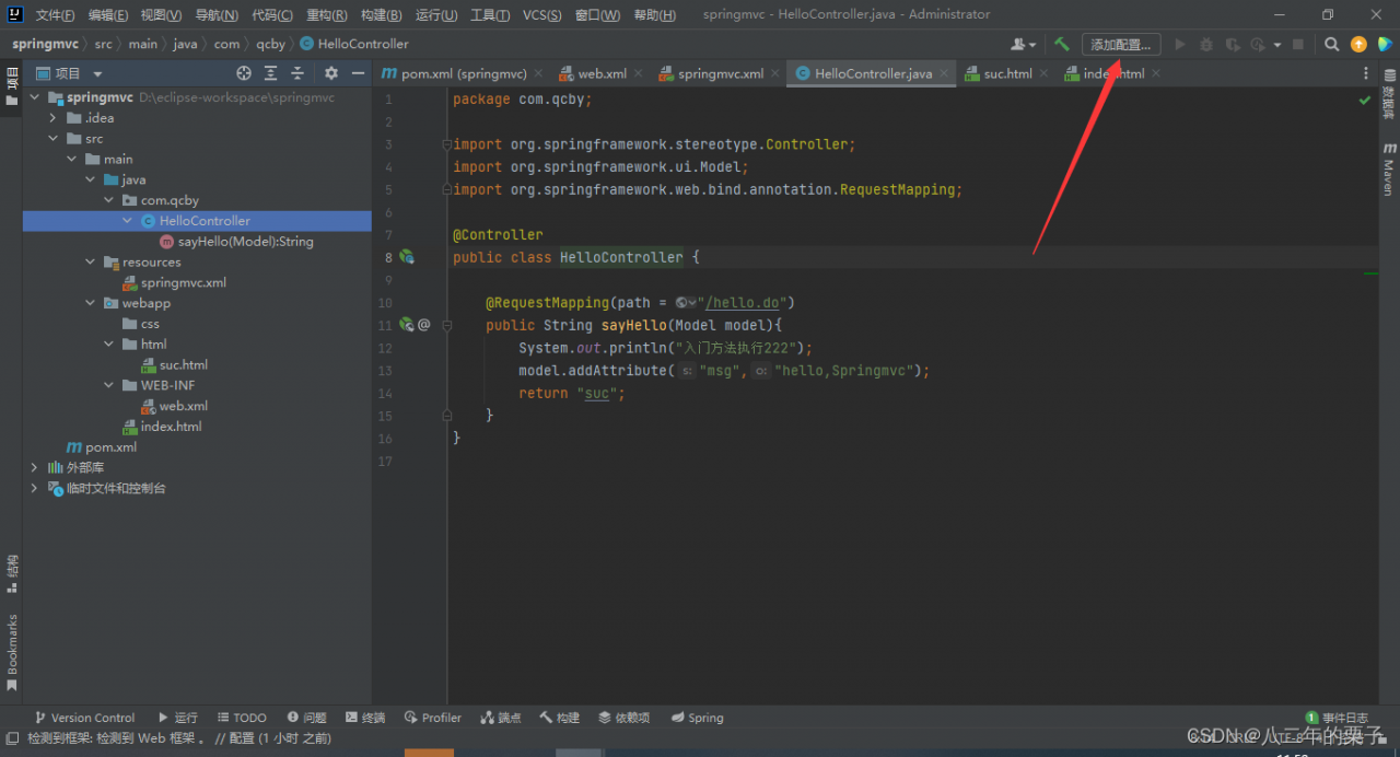 <!--springmvc.xml:指的是配置文件的名称:需要配置springmvc.xml,在下面-->