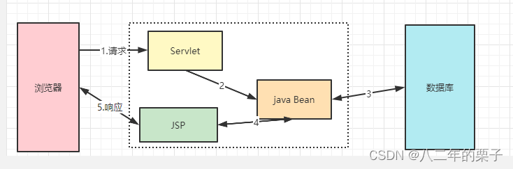 这样的设计模式到这一个jsp页面负责了视图的展示和业务流程(即html和servlet都是它干了)的控制高度耦合的结果是Jsp代码十分复杂,后期维护困难!