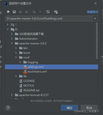 弄到你的自己setting.xml配置文件。我的可能跟你们不一样,我配到这里了