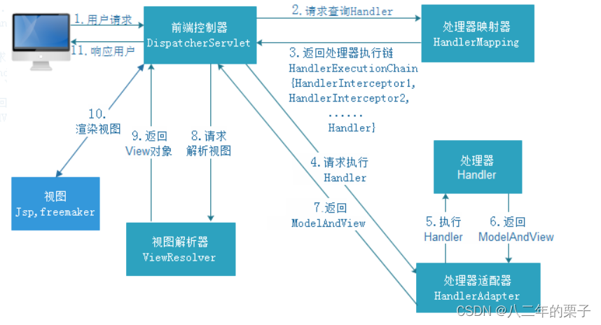 Spring MVC的本质就是一个servlet,是对原生的servlet进行了封装。在以前我们浏览器的每一次请求都需要我们写一个对应的servlet,现在我们只需要将浏览器的请求和响应交给DispatcheServlet进行统一的处理。