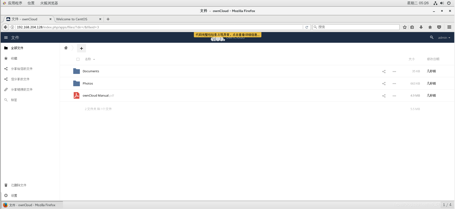 26、测试(将某个文件拖入Windows本地文件夹中,然后在Linux的ownCloud中查看是否进行了同步)