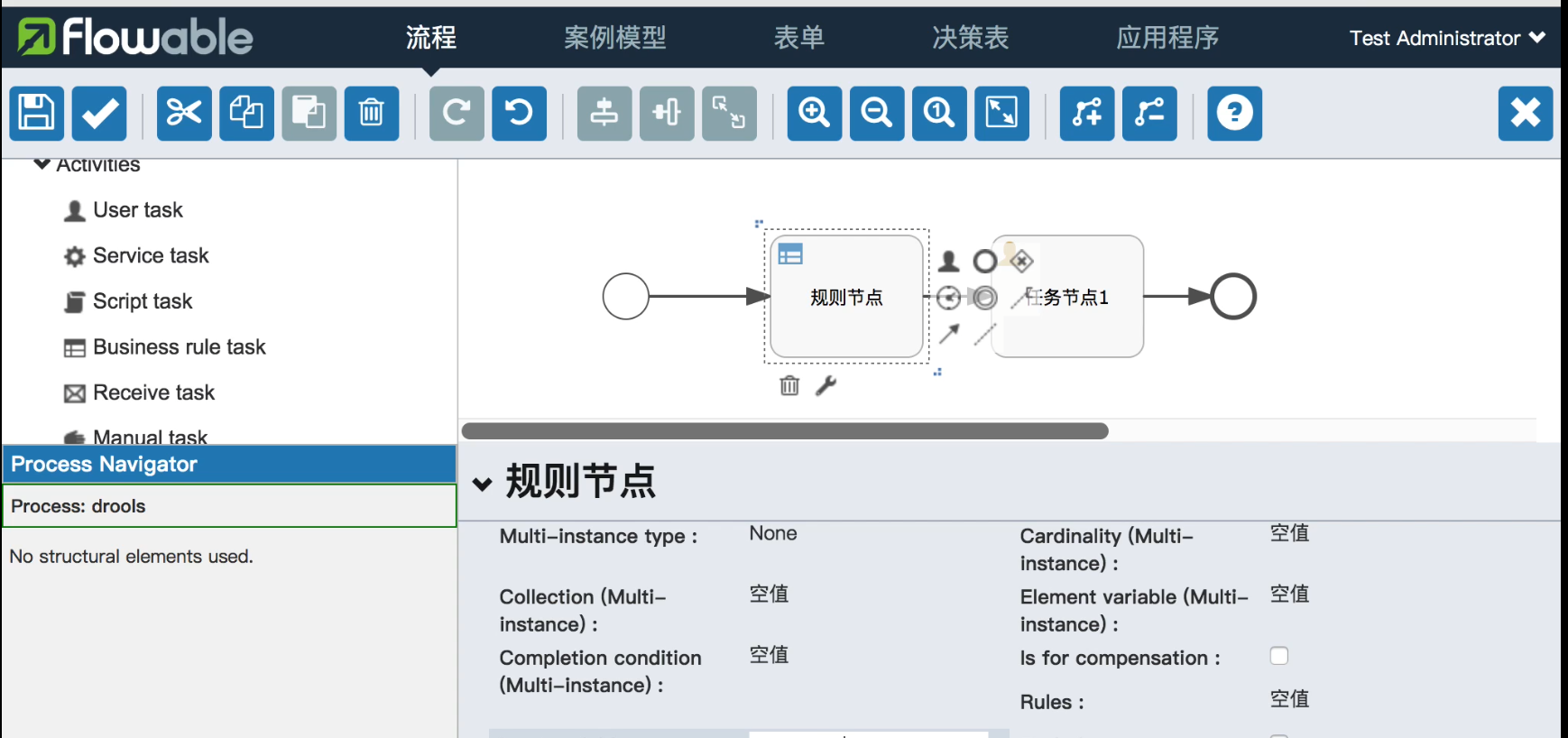 任务类型中就可以看到一个Business rule task,商业规则任务。