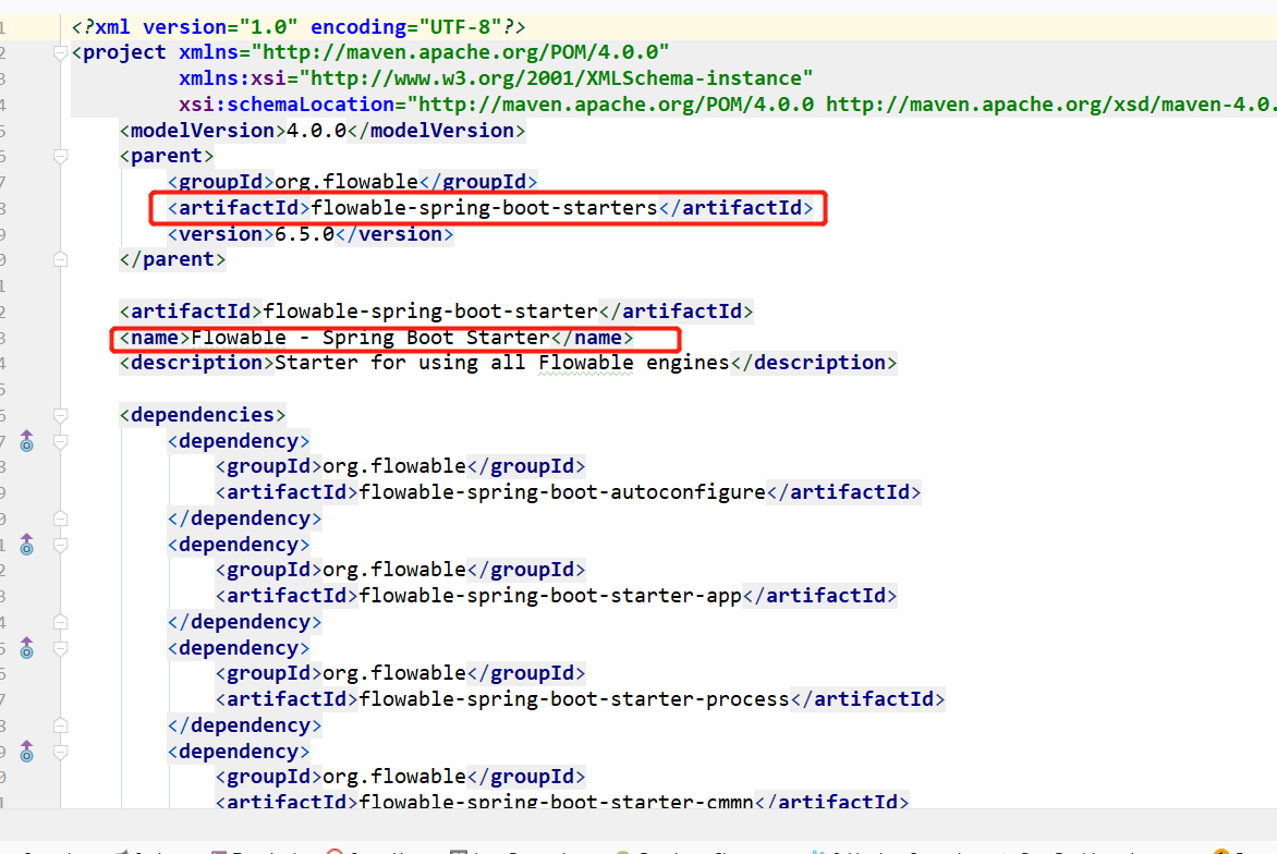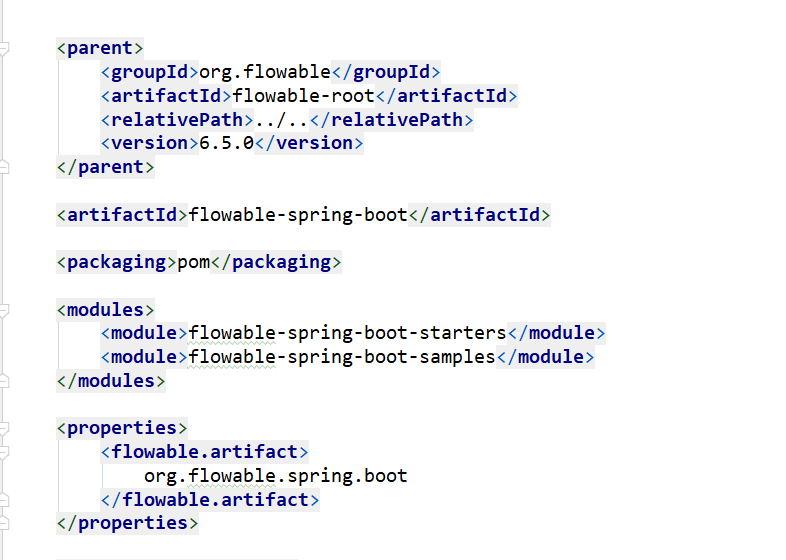 flowable-srping-boot-starter的依赖版本是6.5.0,点进去这个jar包的pom文件