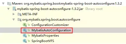 以mybatis为例,在上面的截图中,我们发现mybatis-spring-boot-starter这个包帮我们引入了mybatis-spring-boot-autoconfigure这个包,如下图: