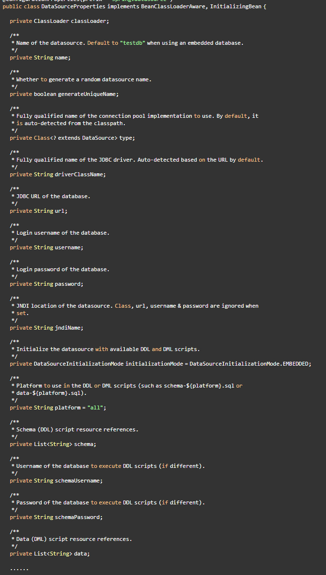 DataSourceProperties中封装了数据源的各个属性,且使用了注解ConfigurationProperties指定了配置文件的前缀。